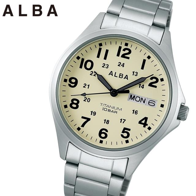 純チタンケースで38mmの軽量設計、10気圧防水とデイ・デイト表示を備えた実用モデル。シンプルながら視認性と耐久性に優れたモデルです。【アルバ ALBA】