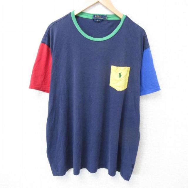 古着 バンズ VANS 半袖 ブランド Tシャツ メンズ ワンポイントロゴ クルーネック 紺他 ネイビー ボーダー XLサイズ 中古 中古 古着