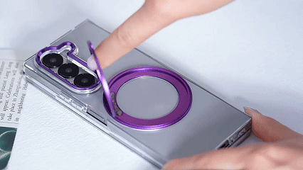 多機能スタンドとリング一体型の斬新なデザインです。隠しスタンドの設計で、省スペース性に優れ、収納するときは水平的に置けできて、持ち運びの邪魔になりません。縦置きでも横置きでも安定して支えられ、40°~ 120°の間で多角度自由に調整できます。両手が完全に解放されます。