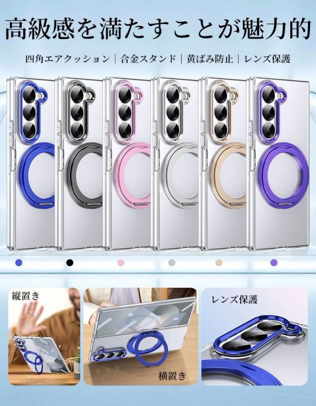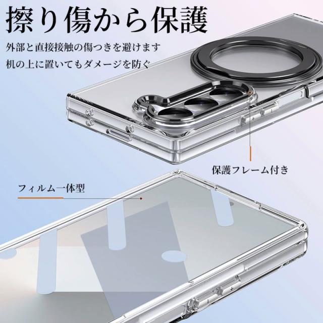 galaxy z fold7 ケース クリア リング付き スマホケース galaxy z fold6 galaxy z fold5 ギャラクシーZフォールド7ケース スマホケース galaxy z fold7 galaxy z fold6 ケース 透明ケース 360度スタンド 保護フィルム カメラフレーム ワイヤレス充電 レンズ保護 落下防止