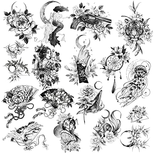 ・精巧な美しい臨時紋身、大人の女性の仮模様、美しい大型花柄、蝶、日系スタイル、唯美のアジアファッションタトゥーン、一時刺青色セットステッカー