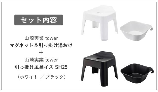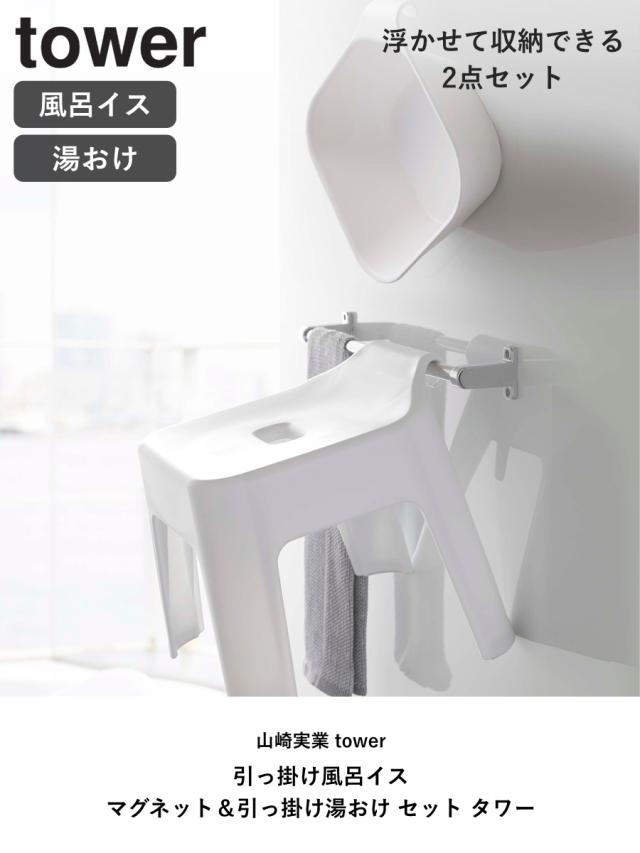 山崎実業 tower 引っ掛け風呂イス+マグネット&引っ掛け湯おけ セット タワー ( 4903208053839 タワーシリーズ 洗面器 バスチェア 風呂おけ 磁石 桶 吊り下げ フック 壁面 風呂 浮かせて収納 お風呂椅子セット 風呂イス お風呂 椅子お風呂椅子セット お風呂 椅子)