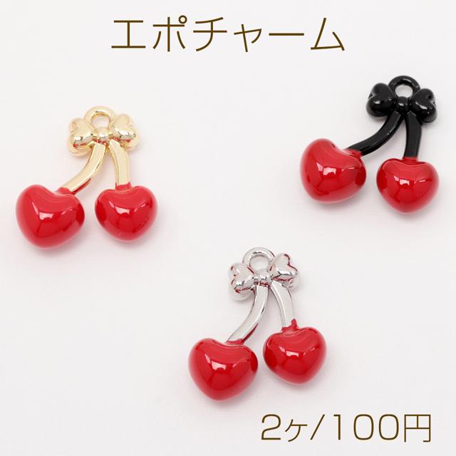 エポチャーム さくらんぼ チェリー 立体 果物 フルーツ ミニチュア メタルチャーム 約15×16mm(2ヶ)