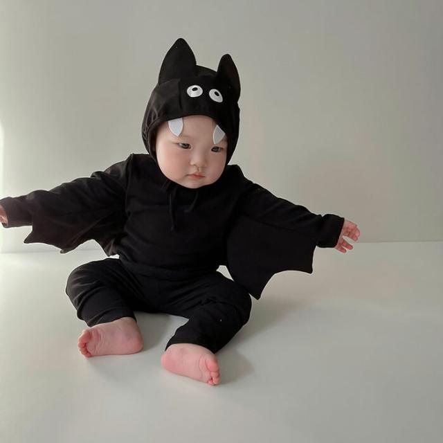ハロウィン ベビー 着ぐるみ セットアップ ハロウィン 衣装 仮装 子供 コウモリ 女の子 男の子 コスプレ 赤ちゃん ベビー服 トップス パンツ 帽子付き かわいい 写真撮影 出産祝い ハロウィン プレゼント 春 秋 73cm 80cm 90cm 100cm
