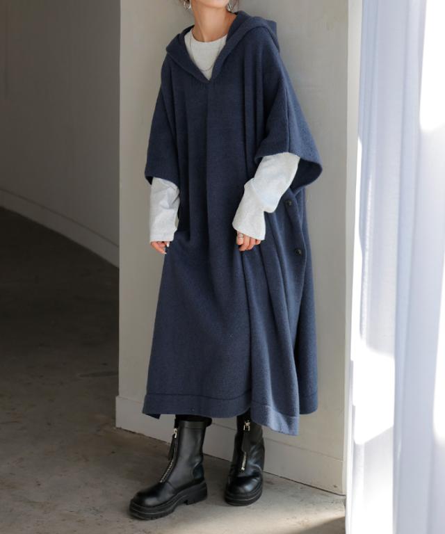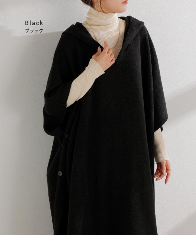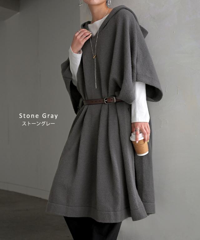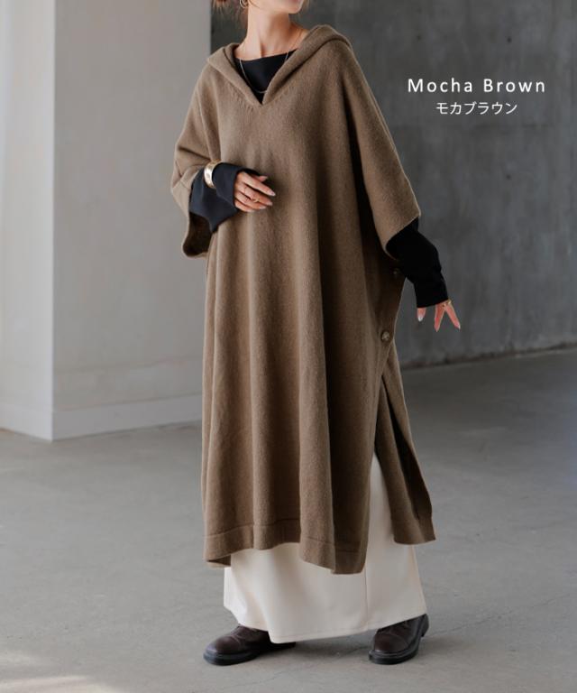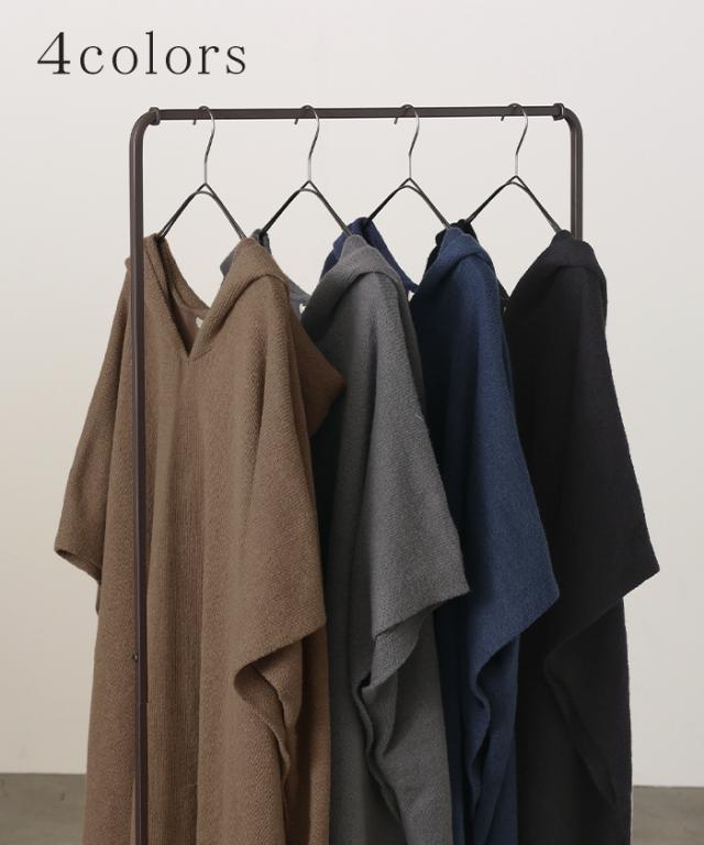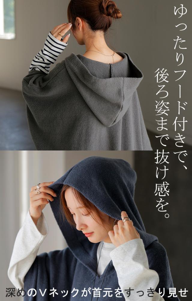 オーバーサイズがかわいいフード付きニットポンチョです。