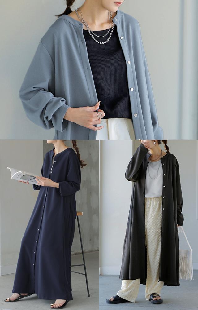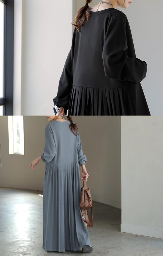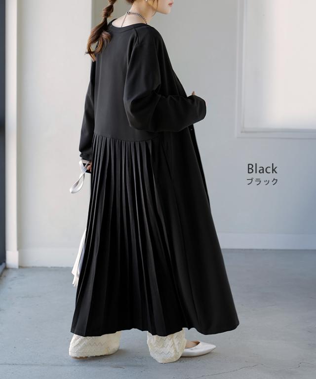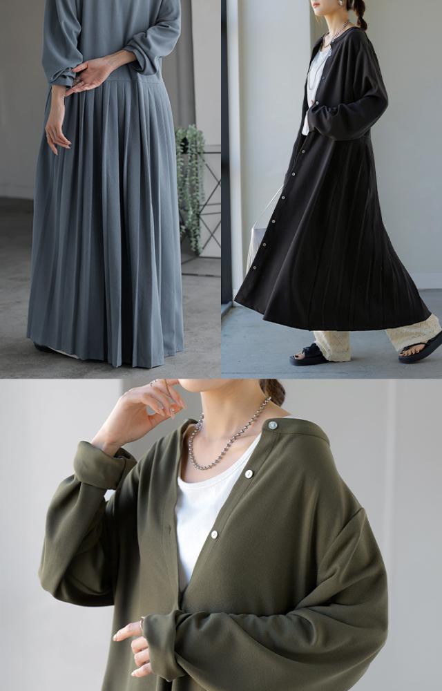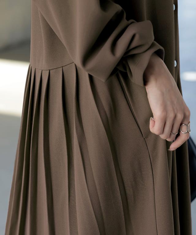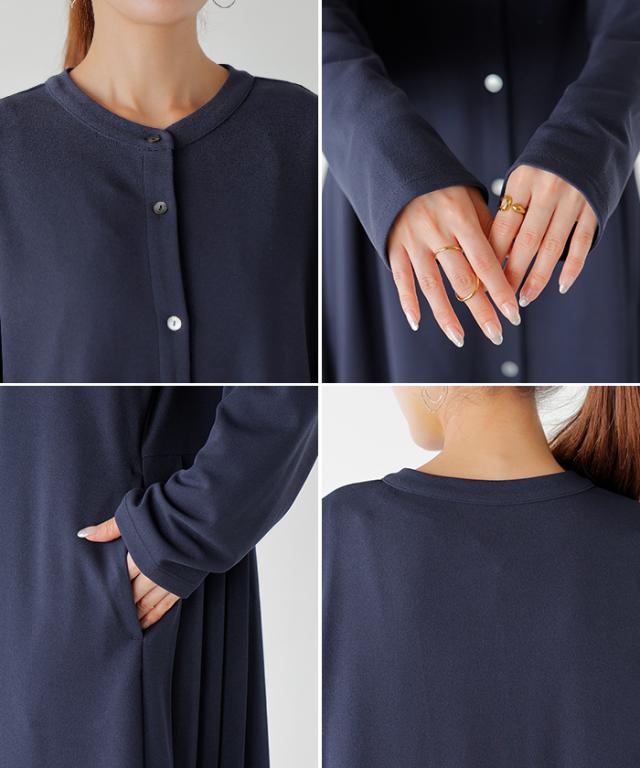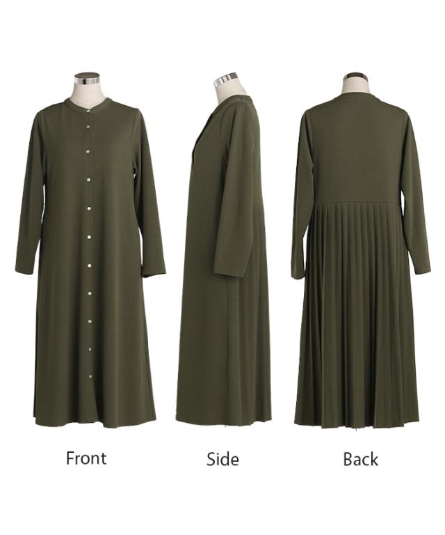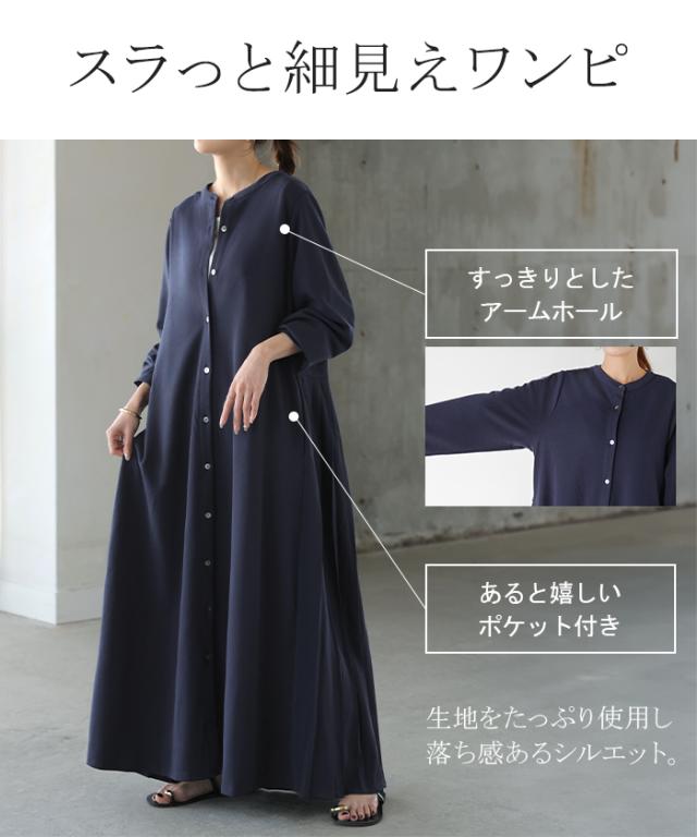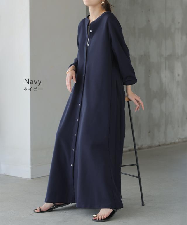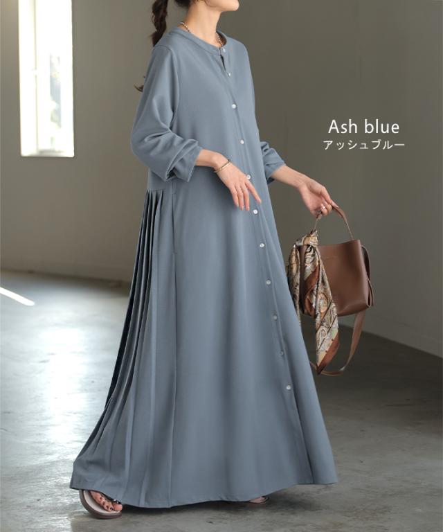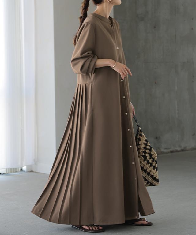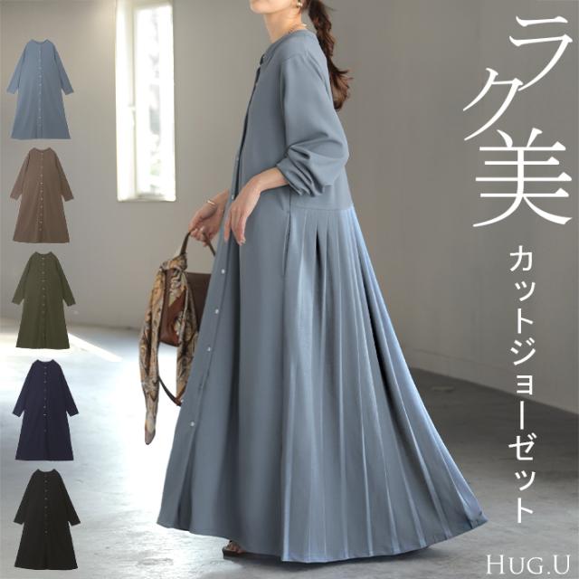 2025AW新作 ワンピース プリーツ ノーカラ— レディース 一部3月中旬入荷 ロング ロングワンピース Aライン マキシ マキシワンピース ワンピ ロングワンピ シャツ シャツワンピース シャツワンピ 長袖 羽織 きれいめ 体型カバー 大きいサイズ 無地 黒 秋 冬 HUG.U 秋新作