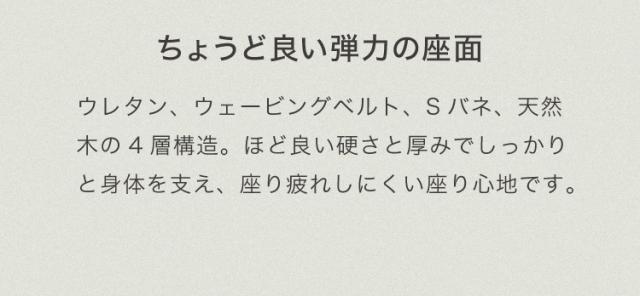 内部構造:シリコンフィル/ウレタン/ウェービングベルト/Sバネ/天然木