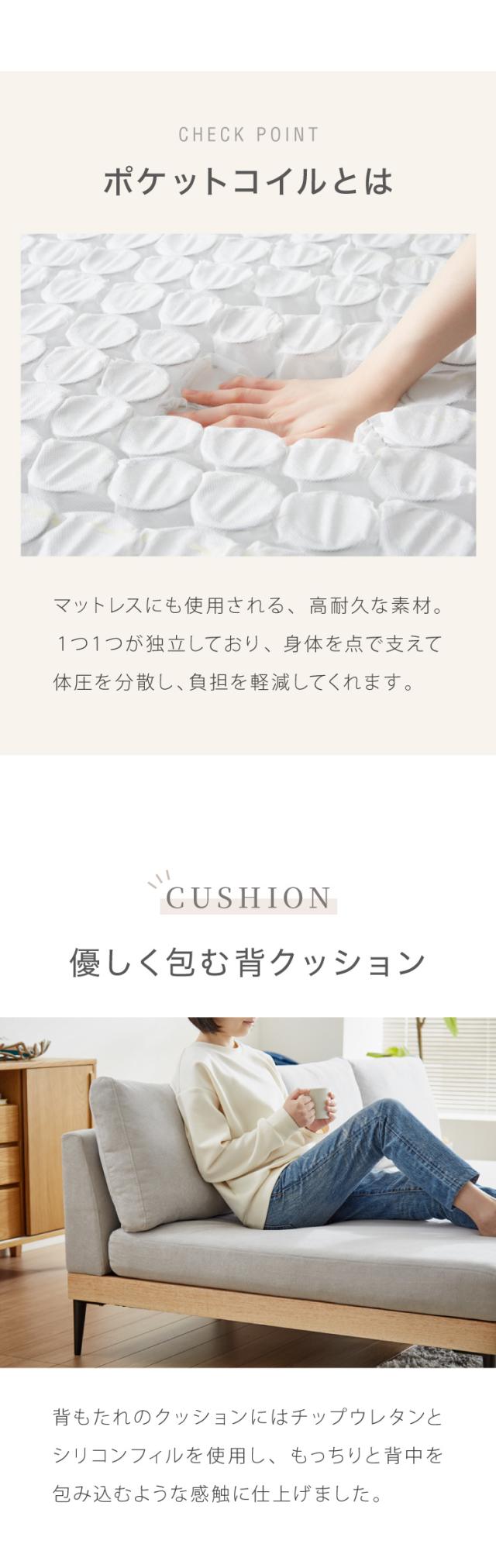 座面:ポケットコイル/35Dウレタン/シリコンフィル綿