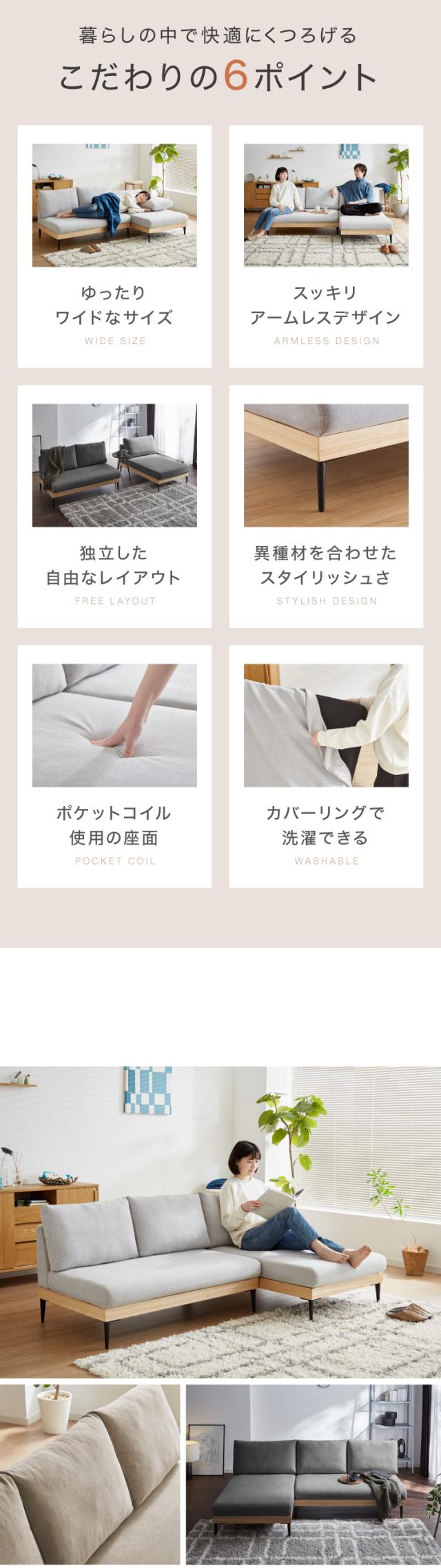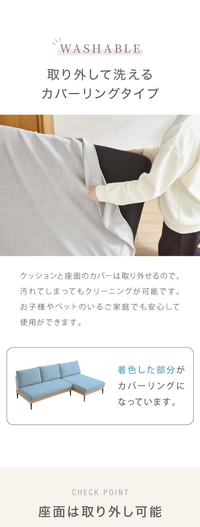 ソファー 3人掛け カウチソファ ソファーセット 幅194 ソファ カバーリング 洗える ポケットコイル カバーリングソファ 木製 三人掛け ウッドフレーム 2WAY コーナーソファ sofa ひろびろ座面 北欧【送料無料】