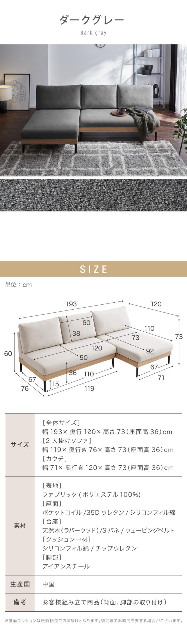 幅193×奥行120×高さ73(座面高36)cm