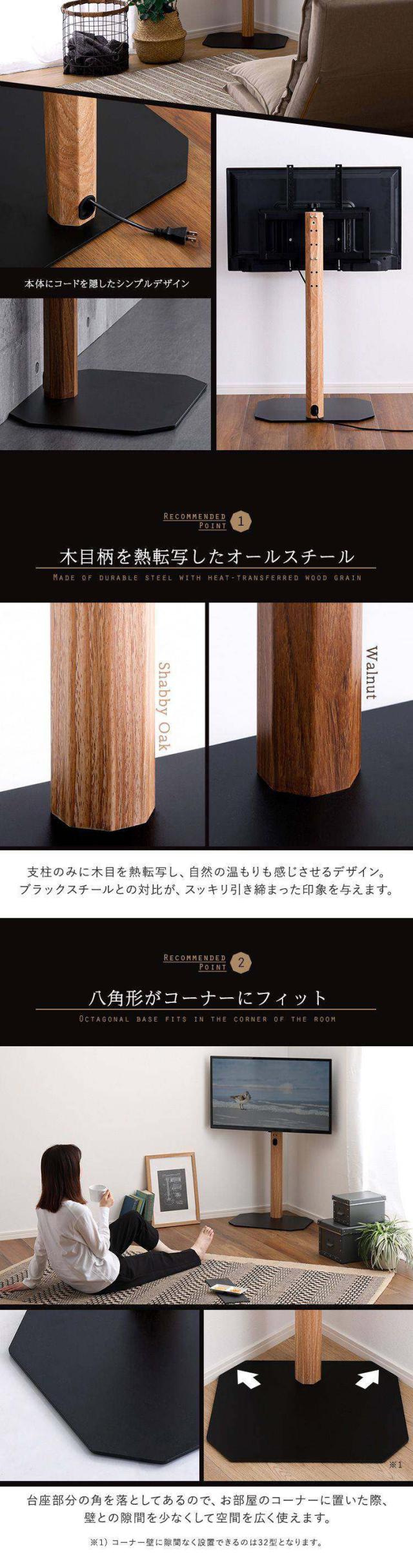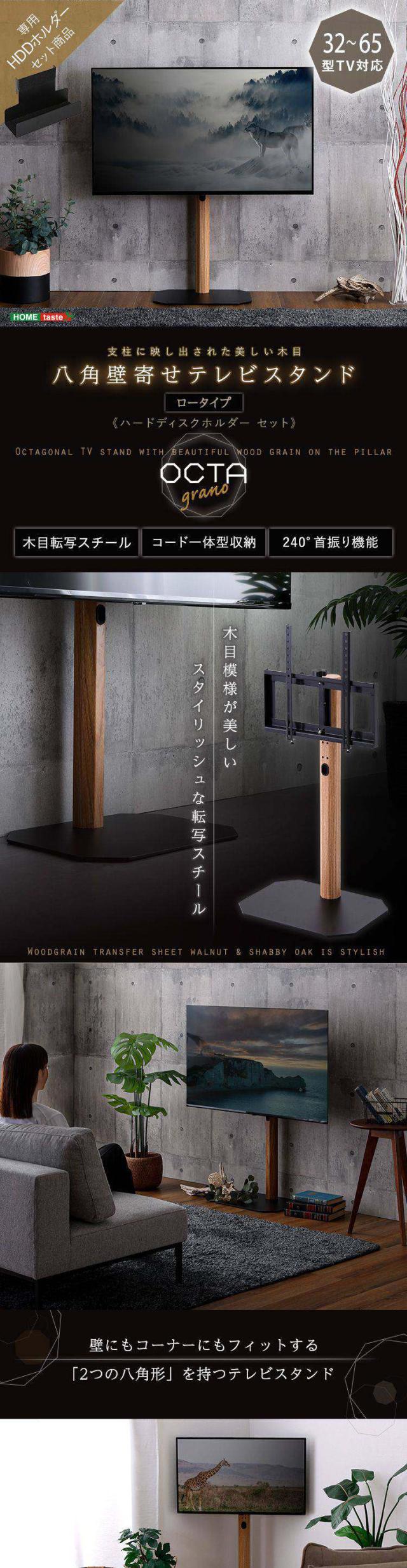 テレビスタンド ロータイプ ハードディスクホルダー セット ヴィンテージ 八角 スタイリッシュ スイング 角度調整 高さ調整 スチール 木目調 コーナー スタンド TVスタンド シンプル コード隠し(代引不可)【送料無料】