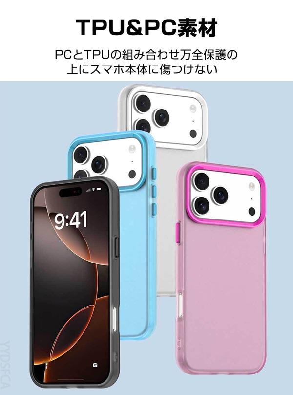 アップル アイフォン Apple iPhone 17 17 Air 17 Pro 17 Pro Max ケース 耐衝撃 半透明の マット カバー TPU&PC 耐衝撃 軽量 持ちやすい 実用 傷つき防止 全面保護 アップル アイフォン17 / 17エア / 17プロ / 17プロマックス 人気 背面カバー CASE 強化ガラス付き