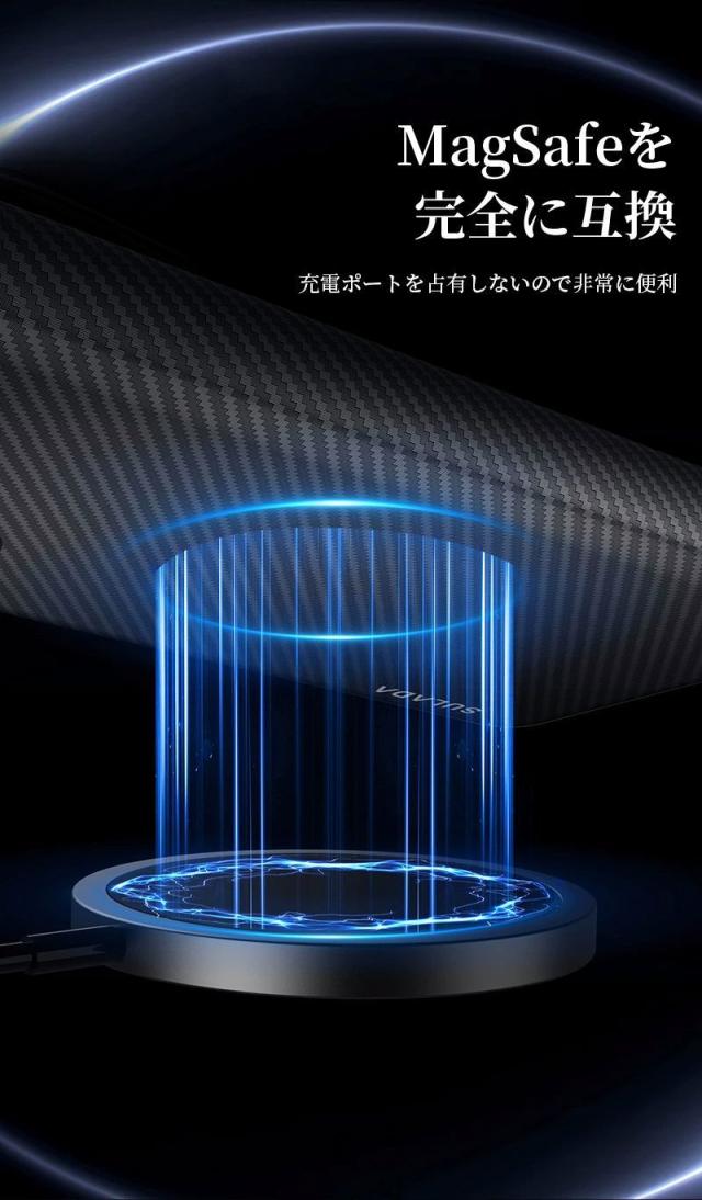 内蔵マグネットでワイヤレス充電器に自動調整。 Magsafe充電器とサードパーティのQi認証ワイヤレス充電器と互換性があります。
