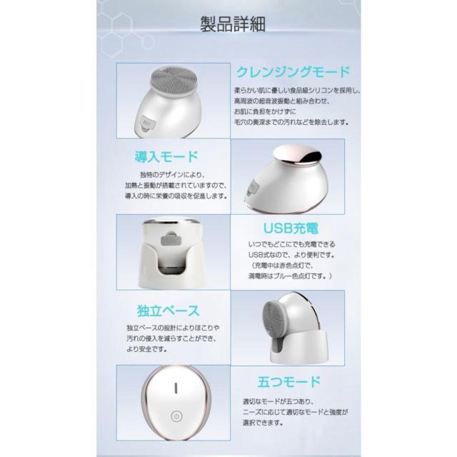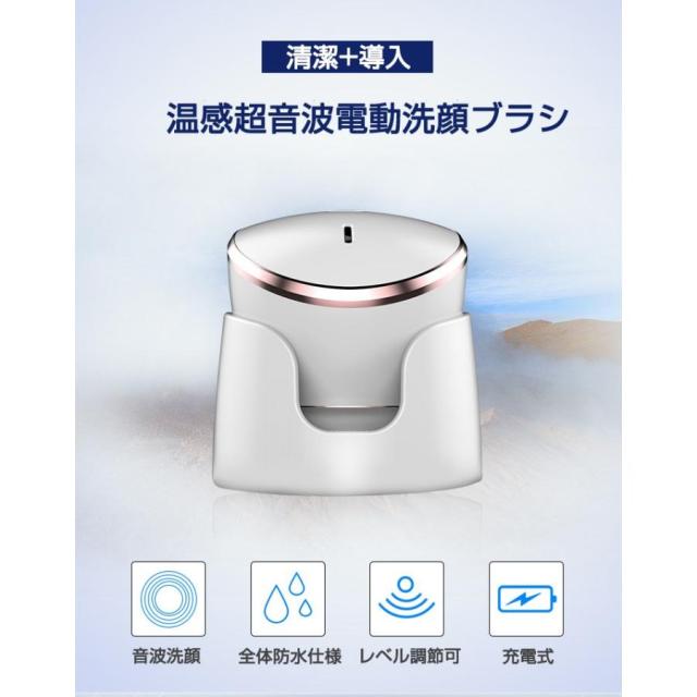 洗顔ブラシ 美顔器 温感導入 毛穴ケア 超音波 クレンジング 音波洗顔 メイクオフ 電動 シリコンヘッド USB充電 ニキビ対策 黒ずみ対策 温熱 防水 ギフト