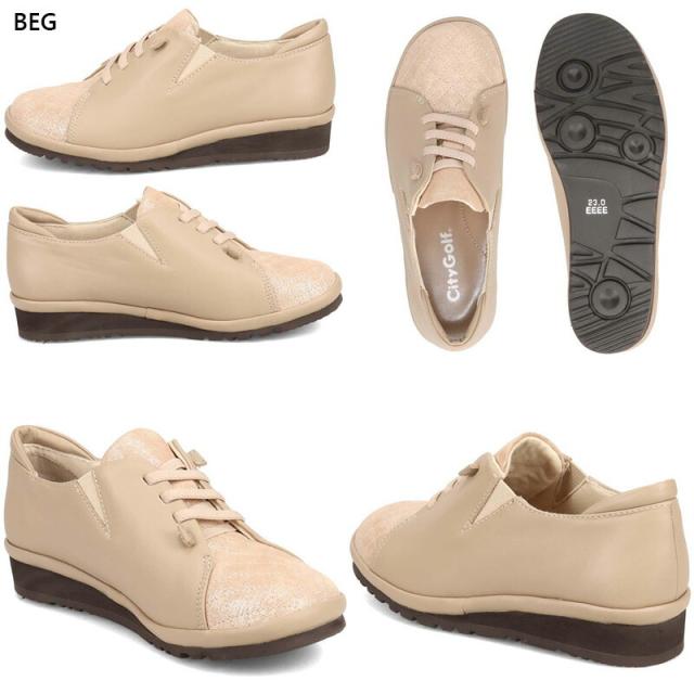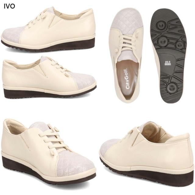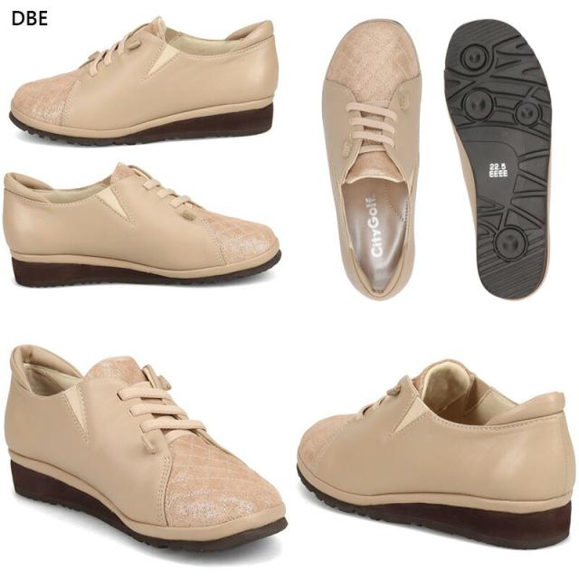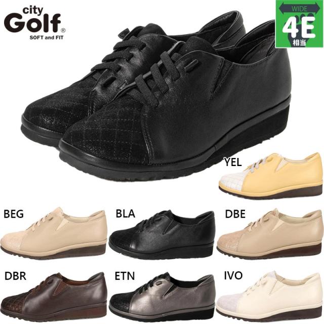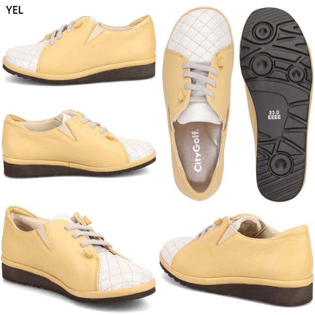4E 幅広 ワイド ゴルフ レディース シティゴルフ 靴 シューズ カジュアル おしゃれ シンプル サイドゴア ゴム紐 履きやすい 歩きやすい 本革 婦人靴 ホワイト 白 ブラック 黒 ブラウン イエロー ベージュ 送料無料 GOLF GFL20105