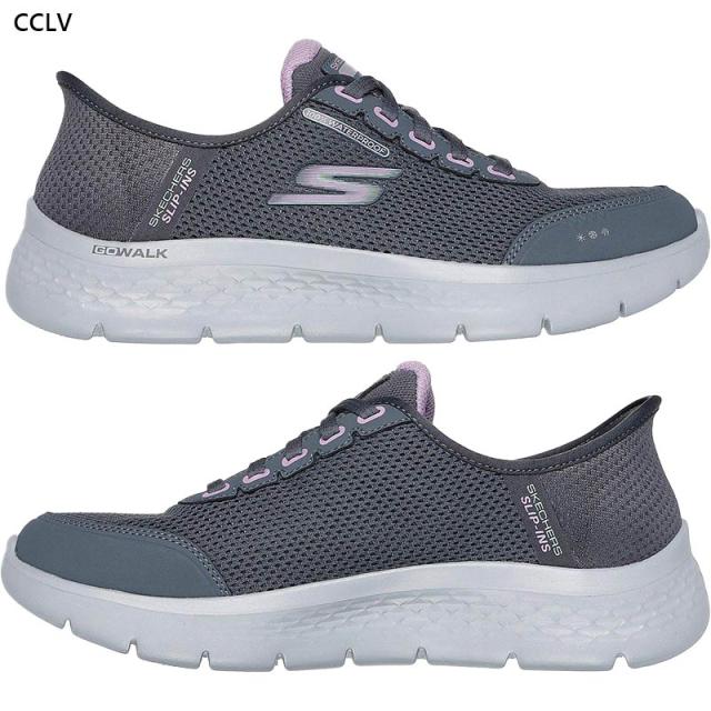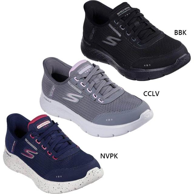 4E相当 幅広 ワイド スケッチャーズ レディース GO WALK FLEX ゴーウォーク フレックス スニーカー 靴 シューズ 防水 ローカット 紐靴 ブラック 黒 グレー ネイビー 灰色 送料無料 SKECHERS 124846W