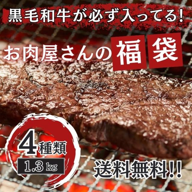 送料無料 焼肉 黒毛和牛 入りお肉屋さんの福袋 4種以上1.3kg以上 10,000円相当 牛肉 国産 牛たん 家族用 大容量