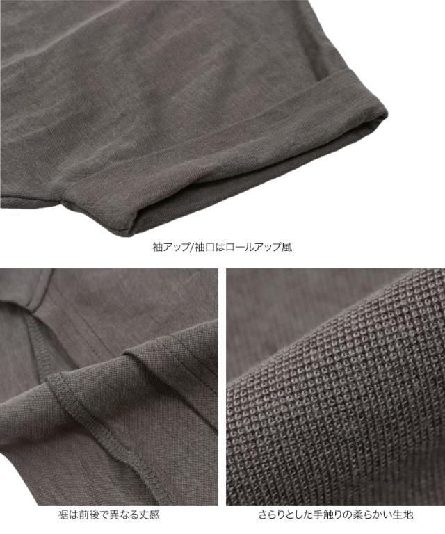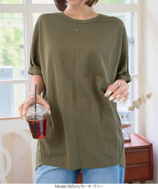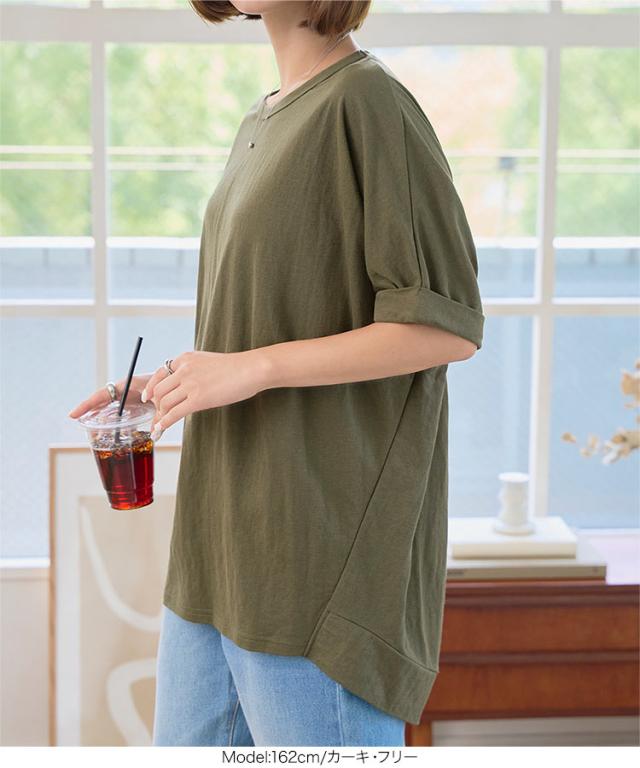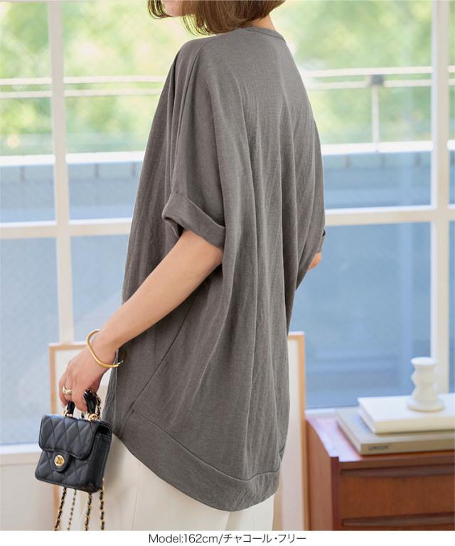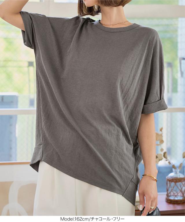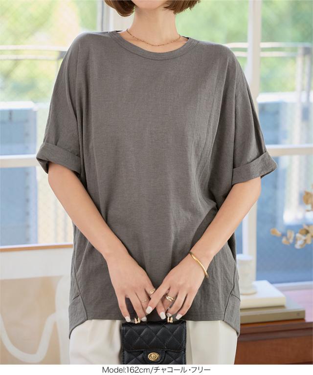 シンプルなのにどこかこなれ感のある、大人のための接触冷感チュニックTシャツ。程よいゆとりと前後差のある丈感が、動きにニュアンスを生み出し、さっと着るだけでサマになるシルエットに。ロールアップ風の袖口が、さりげないアクセントとして全体の表情を引き締めてくれます。気取らず着られて、ほんのり可愛さも楽しめる、毎日のスタイリングにうれしい一枚です。【素材・サイズ感】全体的に程よくゆとりのあるシルエットで、体のラインを拾わず、リラックス感のある快適な着心地。ヒップをしっかりカバーするチュニック丈に、前後差のある裾デザインが加わり、自然とすっきり見えが叶います。肩や腕まわりにも余裕があり、ロールアップ風の袖が程よい抜け感をプラス。きれいめにもラフにも着こなせる、大人のワードローブに嬉しい万能Tシャツです。※キャンセル/変更不可※※お届けまでの日程について