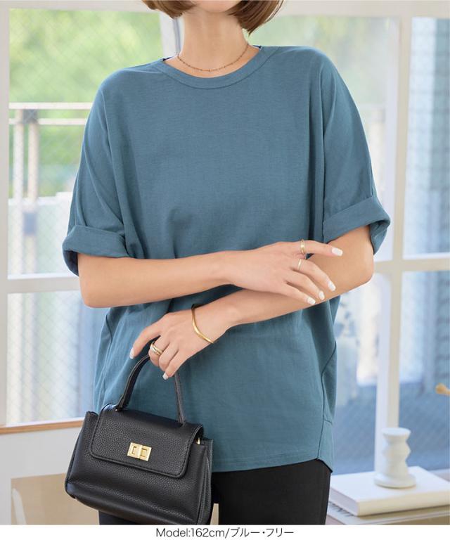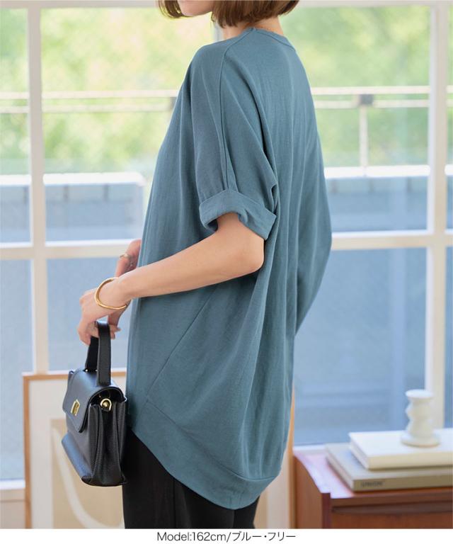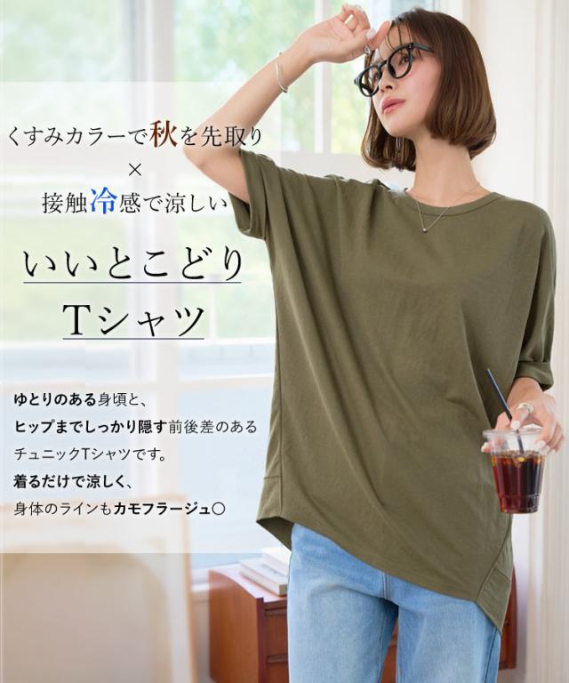 春新作 接触冷感チュニックTシャツ C7662 入荷済 レディース 20代 30代 40代 トップス チュニック Tシャツ 半袖 接触冷感 冷感 涼しい 涼感 暑さ対策 春 夏 秋 初秋 晩夏 先取り ゆったり 体型カバー お尻が隠れる 秋カラー ブルー カー