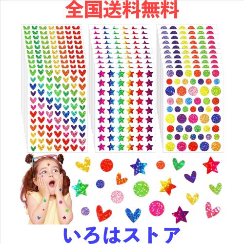 大容量:パッケージには合計30シートのキラキラシールが入っています。星、ハート、円型、3種類のデザインが用意しており、各デザインに10シート、合計1710片があります。大量なシールセットなので、ニーズによって自由に利用していただけます