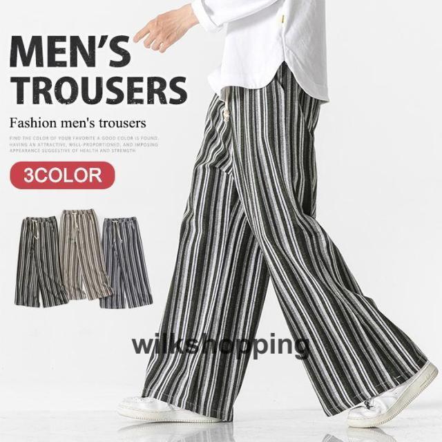 ワイドパンツ メンズ ゆったり バギーパンツ ストライプ柄 ロングパンツ サルエルパンツ 中華風 ボトムス おしゃれ