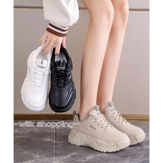 ボリュームスニーカー 歩きやすいシューズ 通勤通学靴 履きやすい PUレザースニーカー カジュアルくつ 韓国
