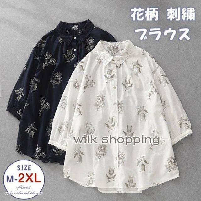 刺繍ブラウス レディース 花柄 夏 シャツ レース シャツブラウス 五分袖