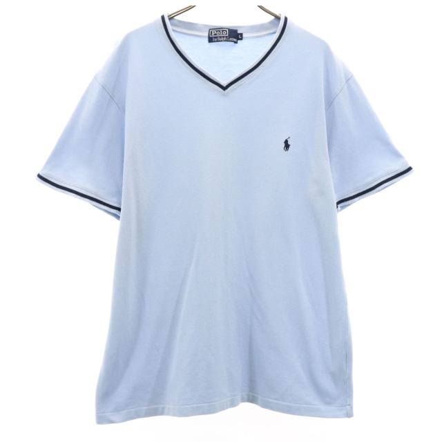 Polo by Ralph Lauren ポロバイラルフローレン 日本製 半袖 Vネック Tシャツ L ブルー系 メンズ