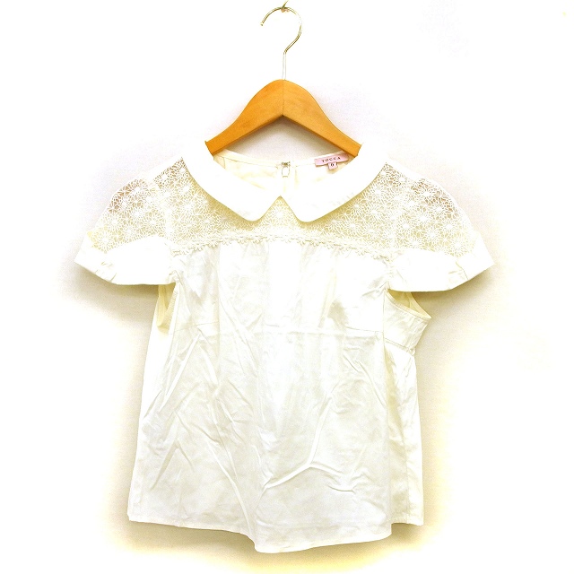【中古】トッカ TOCCA レース ブラウス コットン混 透け感 ラウンドカラー バックジップ 半袖 0 オフホワイト /NT9