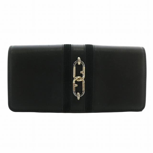 【中古】フルラ FURLA 長財布 二つ折り レザー アーチロゴ ダブルバックル ゴールド金具 黒 ブラック WP00146 AX0790