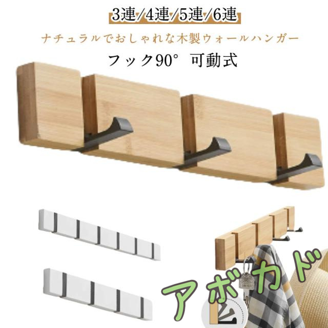 吊り下げ 壁掛けハンガー 壁掛けフック ウォールハンガー ナチュラル 5連 コートハンガー 3連 6連 竹製 可動式 90°回転式 木製 コート掛け ハンガーフック 帽子掛け 装飾 スーツ掛け 洋服掛け 玄関 スッキリ ハンガーフック リビング トイレ おしゃれ 高級感 収納