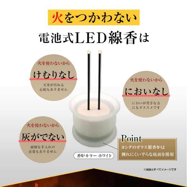 火をつかわないガラス製香炉付LED線香 線香 仏壇 仏具 神具 神棚 火を使わない LED LED線香 お供え お線香 線香立て 乾電池式 慶弔用品 ガラス製香炉 火事 安全 安心 ペット お子様 一人暮らし ミニサイズ コンパクト 国産 日本製 便利 グッズ おすすめ 人気 通販 販売