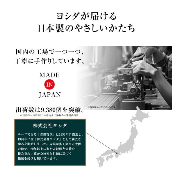 【セット内容】ガラス製香炉×1 LED線香本体×1 香炉底板×1 ※テスト用単5電池2本付き【本体サイズ(約)】直径66×高さ115mm【カラー】ワイン、ホワイト【材質】●線香先端部分:アクリル樹脂●線香本体:ABS樹脂●香炉:ガラス【ご使用方法】ご使用になる前に「取扱説明書」をよくお読みのうえ、正しくお使いください。【使用上のご注意】[1]本商品は電池で発光しますので絶対にマッチ、ライター等での着火はしないでください。[2]本商品の水洗いは絶対にしないでください。[3]本商品の平常使用以外の使用はしないでください。 (改造等)【製造国】日本【販売者】株式会社ヨシダ