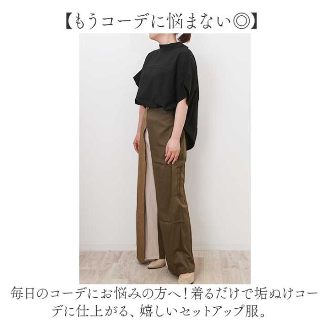 セットアップ レディース カジュアル 通販 ロングパンツ トップス ワイド パンツ 半袖 ロング丈 マキシ丈 上下セット ゆったり 体型カバー 上下 セット きれいめ 上品 シンプル 無地 かっこいい 高級感 通勤 通学 大人 おしゃれ オシャレ