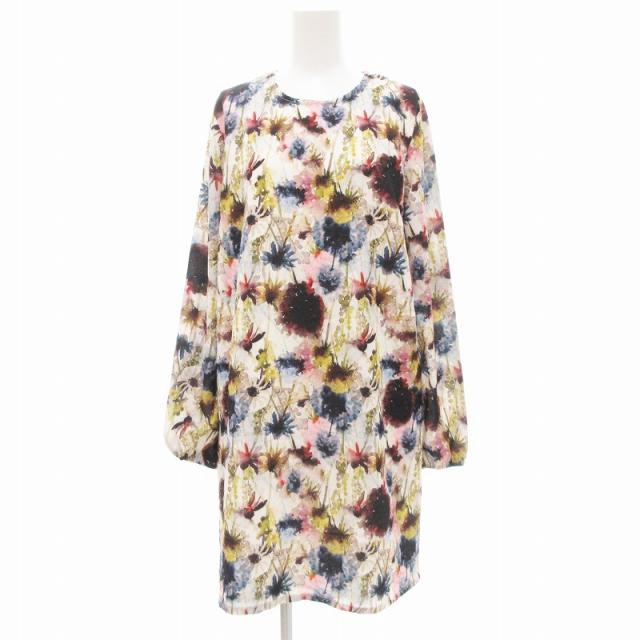 【中古】Md‘M 美品 ワンピース 花がら ひざ丈 長袖 38 マルチカラー /JS レディース
