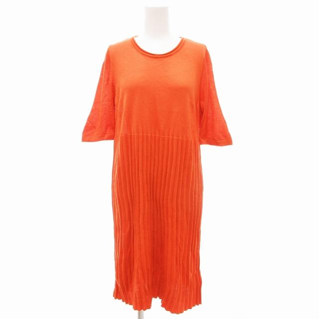 【中古】ラナン Ranan ニットワンピース 半袖 ひざ丈 リブ M オレンジ /JS レディース