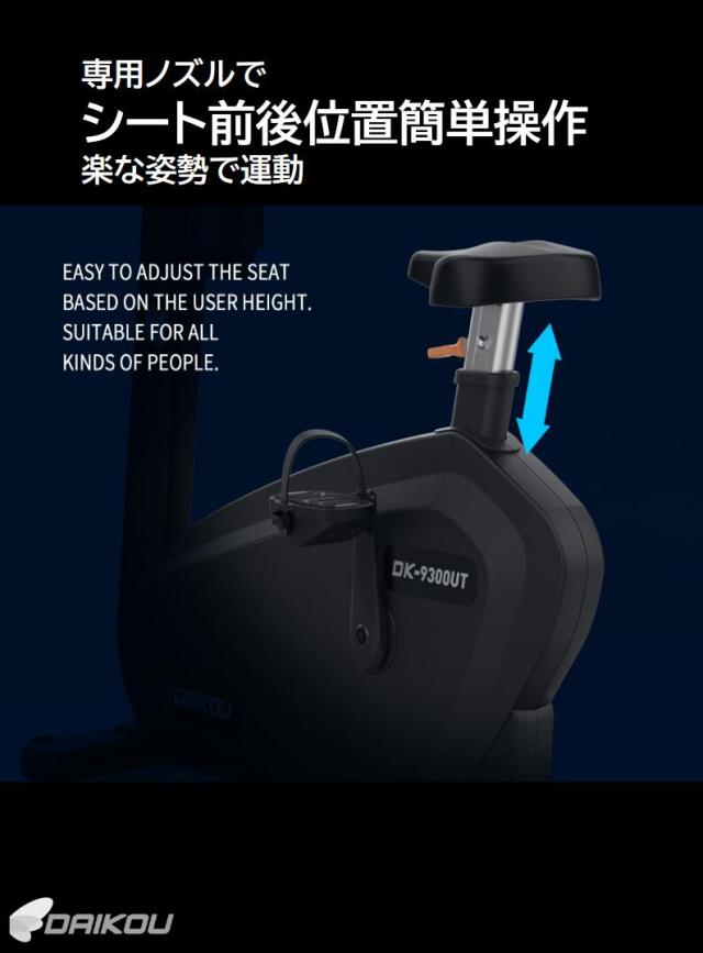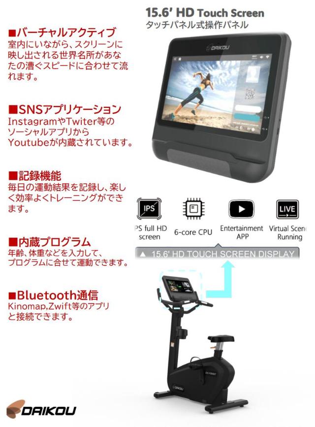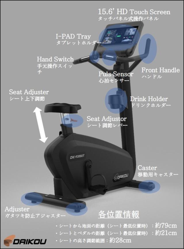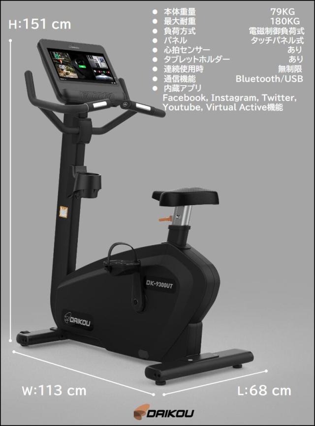 【DAIKOU 業務用 アップライトバイク DK-9300UT】【送料無料】 フィットネスバイク ルームサイクル 静音 電磁制御式負荷 40段階 ダイエット タッチパネル 心拍測定 アプリ連動 タブレットホルダー 大広 ダイコウ ダイコー daikou