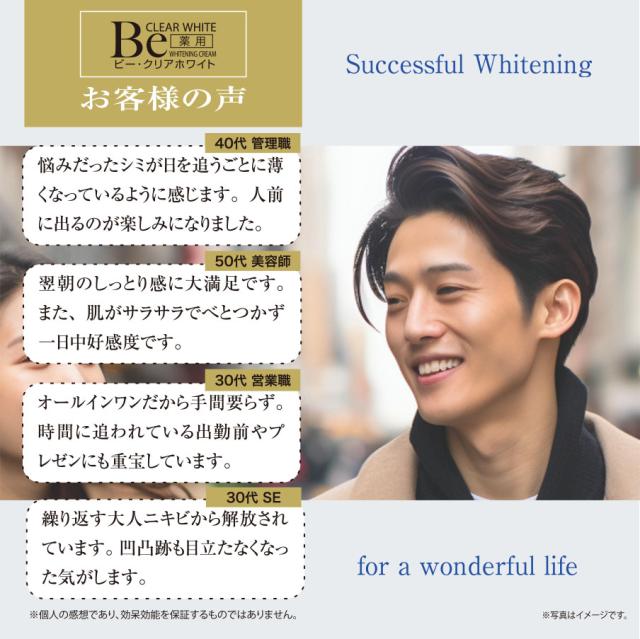 ■様々なご要望にお応えします【薬用 美・クリアホワイトクリーム 送料無料 ポイント 2倍 シミ取りクリーム 男性用 薬用 Beクリアホワイトクリーム Be CLEAR WHITE CREAM オールインワンクリーム トラネキサム酸 グリチルリチン酸ジカリウム 医薬部外品美白クリーム 顔 薬用 肌荒れ スキンケア 美白 クリーム 下地 くすみ 紫外線対策 薬用フェイスクリーム 美容クリーム メラニン抑制 年齢肌 エイジングケア 低刺激 艶肌 ツヤ肌 透明感 ベースメイク にきび シミ そばかす カミソリ負け 対策 国産 日本製 化粧品 女性 誕生日 プレゼント ギフト 贈り物】