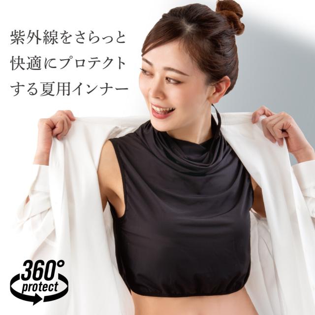 マスク機能がついたひんやり接触冷感インナーで上半身を紫外線から守ります。