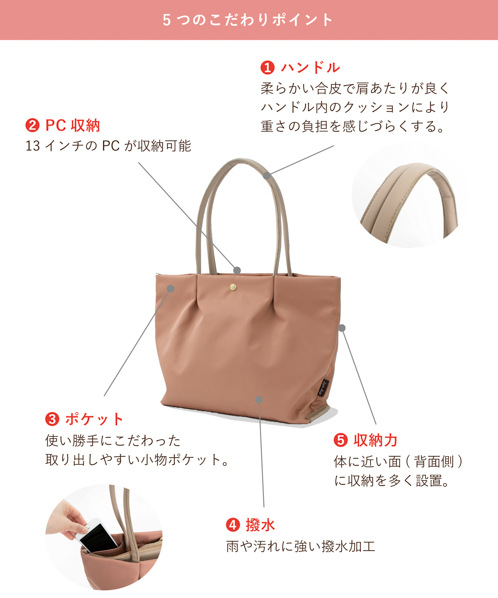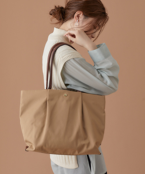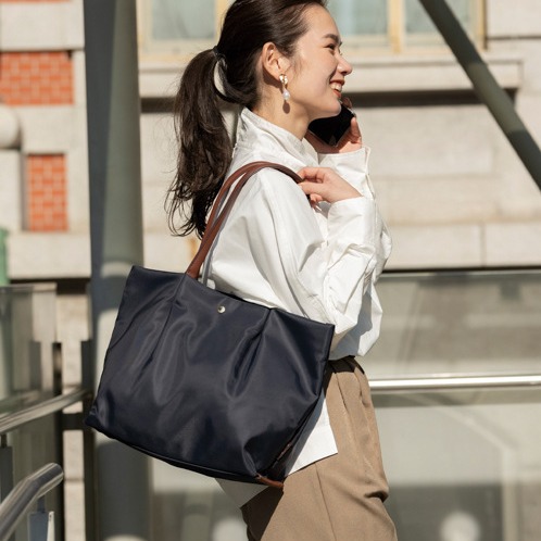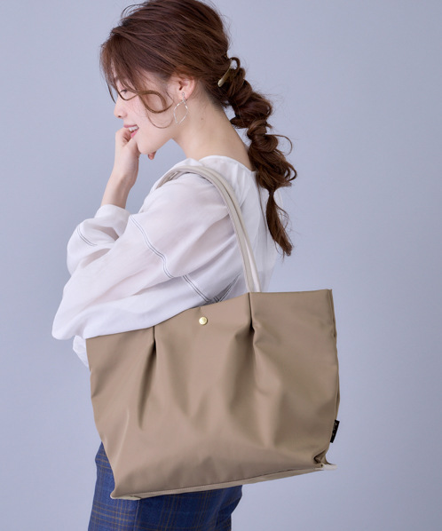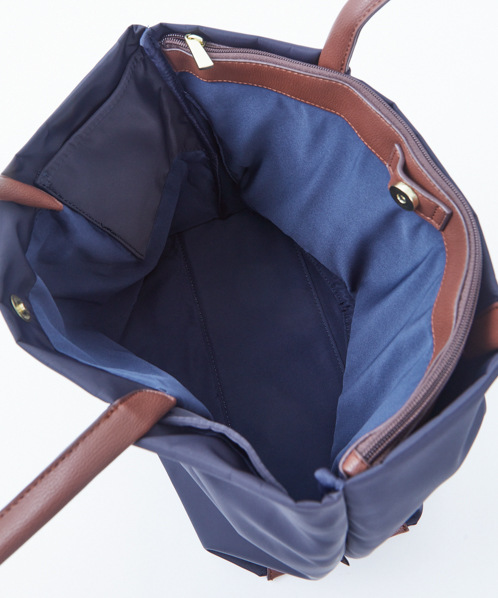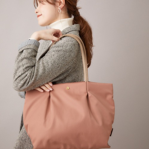 撥水性、防汚性に優れた上質で滑らかなナイロン生地を使用。汚れも拭き取りやすく突然の雨でも中身が濡れにくいのが特徴です。