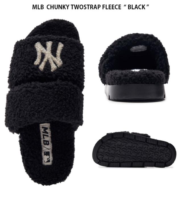 MLB エムエルビー ミュール MLB CHUNKY TWOSTRAP FLEECE BLACK フリース ボア シューズ スリッパ メンズ レディース 3ALPWSL36-50BKS
