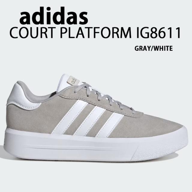 adidas アディダス スニーカー 厚底 COURT PLATFORM SUEDE IG8611 コート プラットフォーム スエード GRAY WHITE シューズ 厚底シューズ