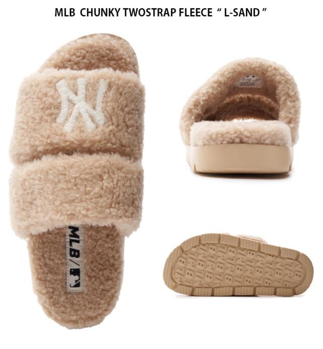 MLB エムエルビー ミュール MLB CHUNKY TWOSTRAP FLEECE L-SAND フリース ボア シューズ スリッパ メンズ レディース 3ALPWSL36-50SAL