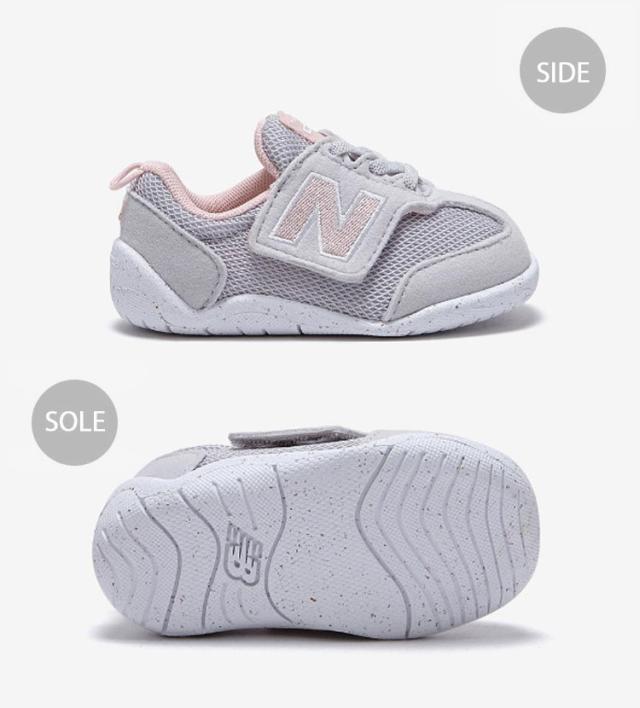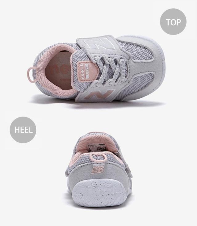 キッズシューズ NBキッズ ベビーシューズ グレー ピンク ベルクロ