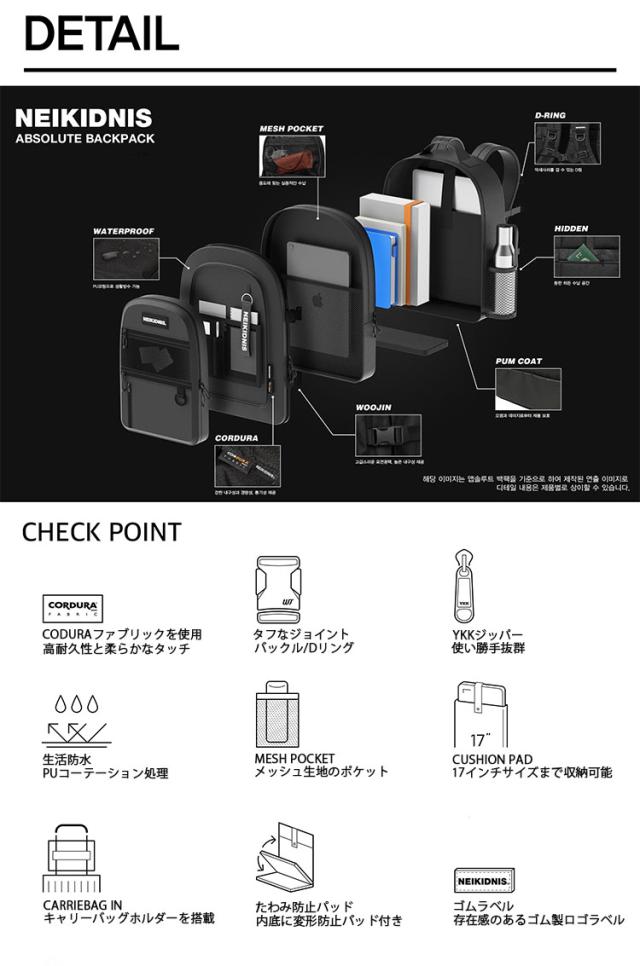NEIKIDNIS ネイキドニス バックパック ABSOLUTE BACKPACK 31リットル リュック デイパック スクールバッグ BLACK BEIGE 生活防水