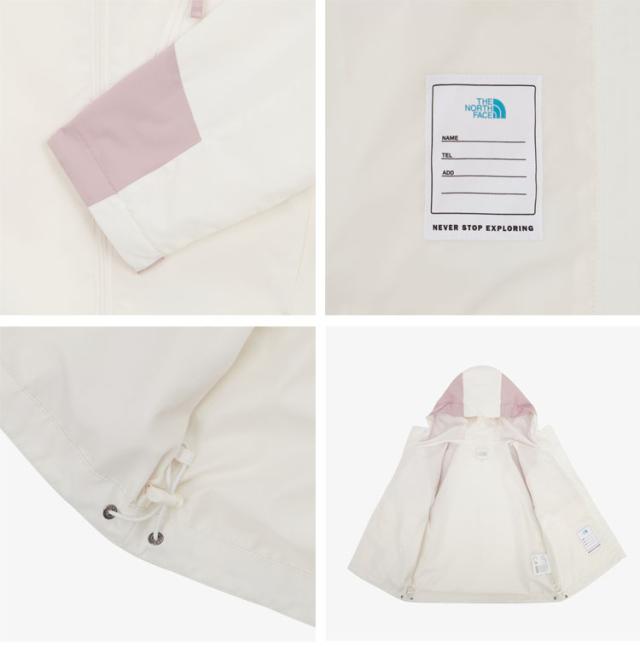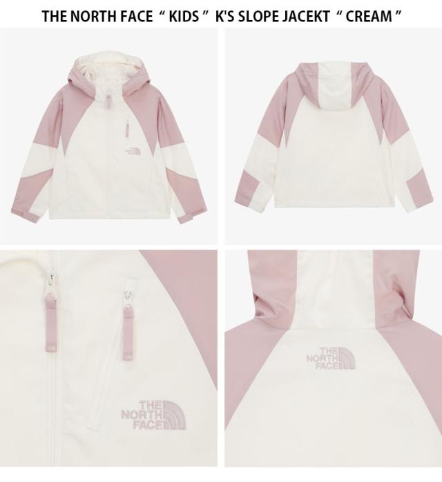 ノースフェイス キッズ ナイロンジャケット ジャケット ウィンドブレーカー パーカー フーディ ジップアップ フード付き ルーズフィット ロゴ カジュアル ストリート スポーツ アイボリー ピンク