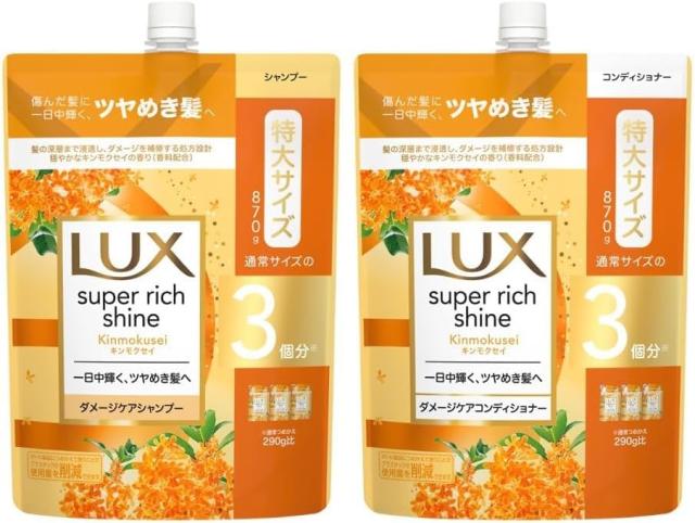 LUX ラックス スーパーリッチシャイン ダメージケア 補修 シャンプー & コンディショナー 詰め替え 金木犀の香 各 870g 通常サイズの3個分