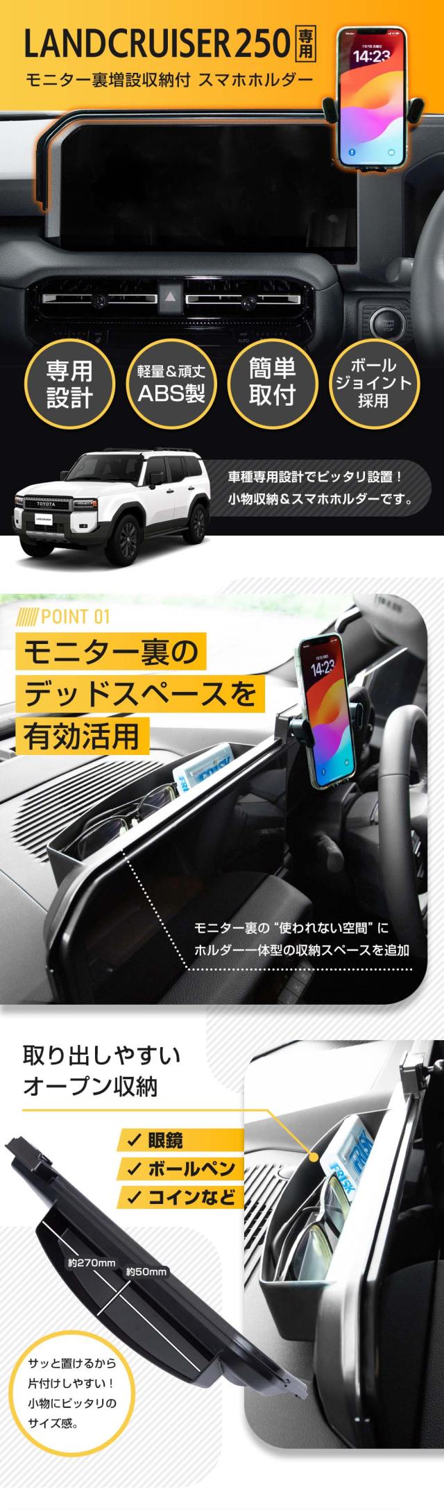 [只今タイムセール開催中]ランドクルーザー 250 専用 モニター裏増設収納付スマホホルダー ランクル250 ヘッド有り無し選択可能 内装 簡単取付 トヨタ TOYOTA [2]