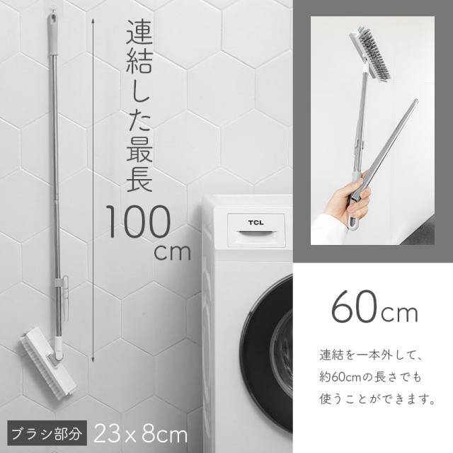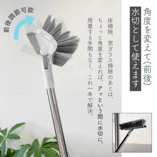 デッキブラシ 掃除用ブラシ 100cm 水切りワイパー タイルブラシ 角掃除 2段ポール 長さ調節可能 60-100cm ベランダ 玄関 床 庭園 掃除用品 風呂 トイレ 風呂掃除 スクレーパー 高所