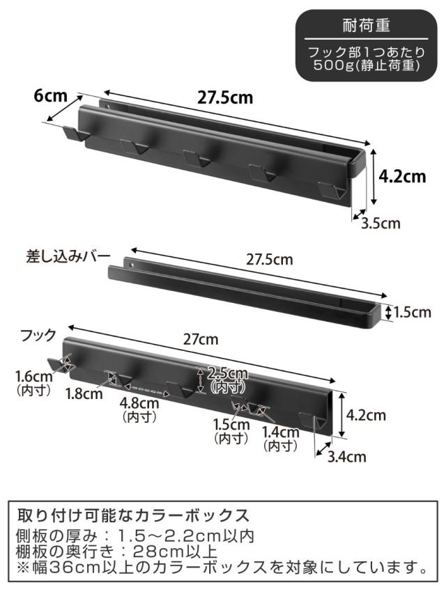 | 耐荷重 | フック部1つあたり:500g(静止荷重) |